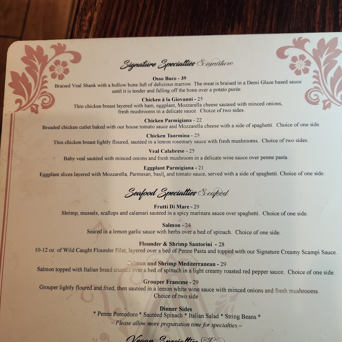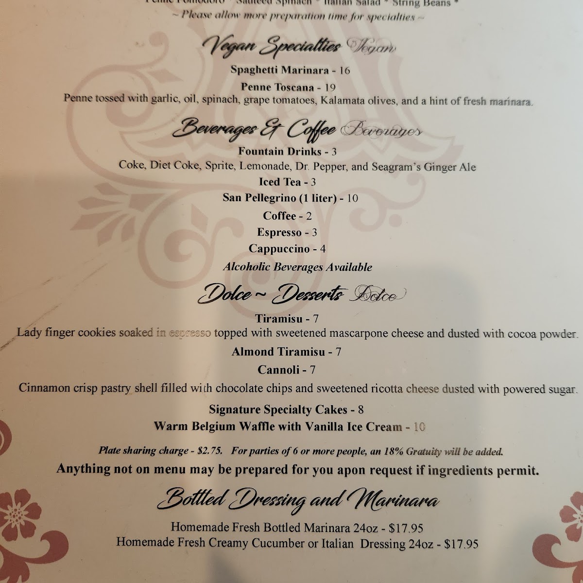 Starter options like crispy fried calamari and fresh salads set a welcoming tone, while signature offerings such as Veal Sorrento and Chicken Parmigiana invite lingering conversation over a hearty plate. And no meal is complete without a traditional Italian dessert, with choices like Tiramisu or Cannoli providing a gentle, sweet finish.